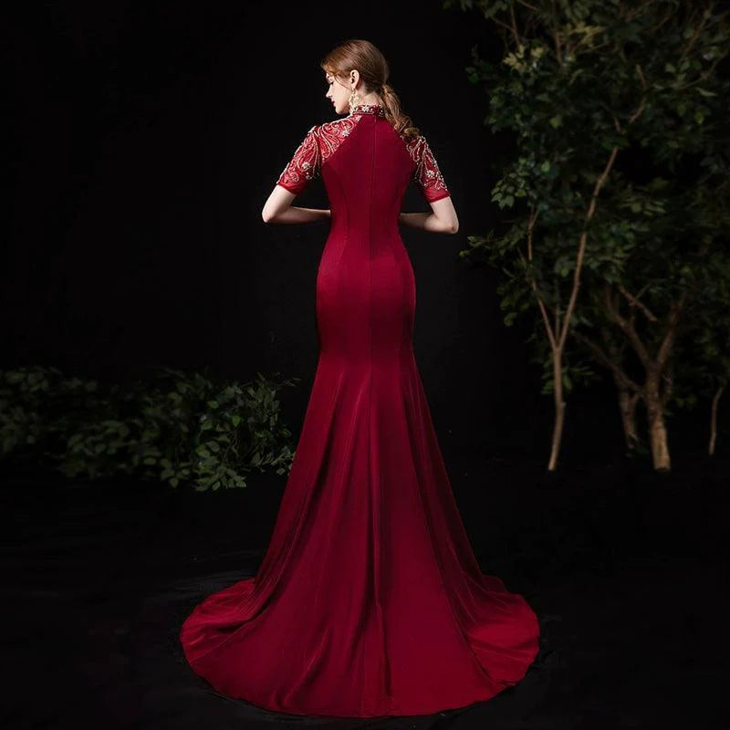 Robe de soirée sirène longue et sexy pour femme, tenue de bal perlée