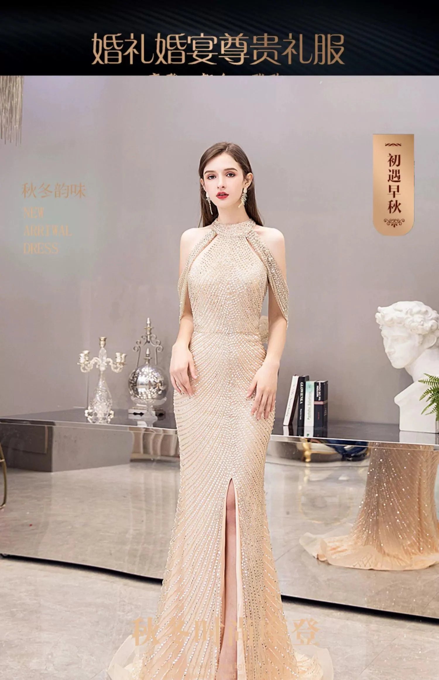 Robe de soirée sirène sexy pour femme, robe de bal longue et élégante ornée de perles