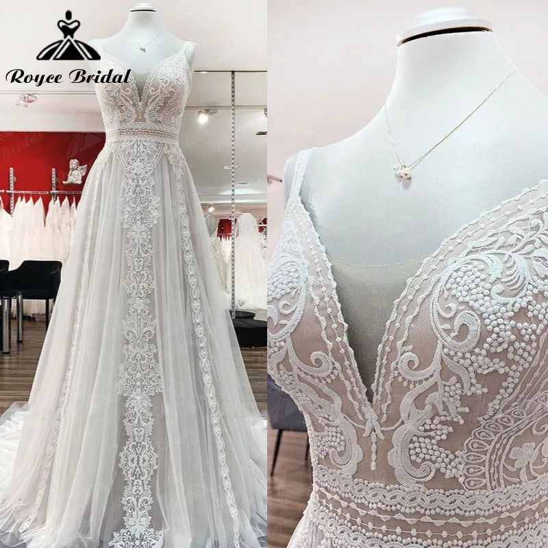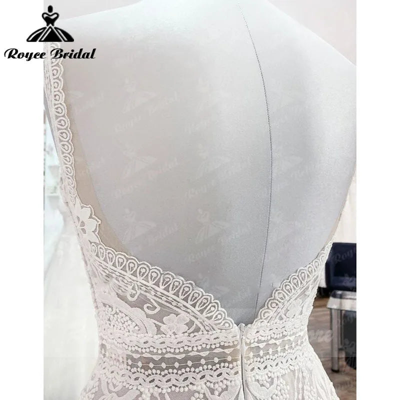 Baoleely A Line Boho Blush Pink Wedding Dress Spaghetti Straps Open Back ROY025