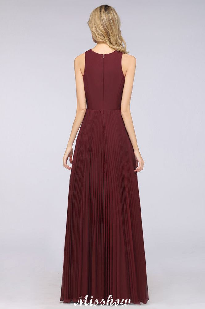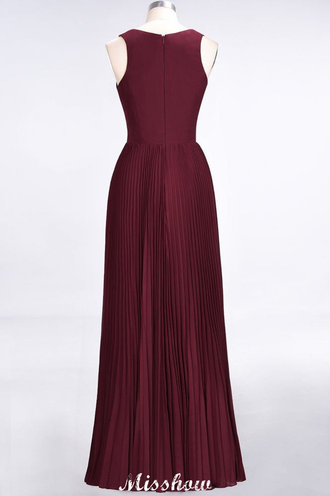 A-Line Chiffon V-Neck Sleeveless Bridesmaid Dress Floor-Length Ruffles Side Split Evening Gown