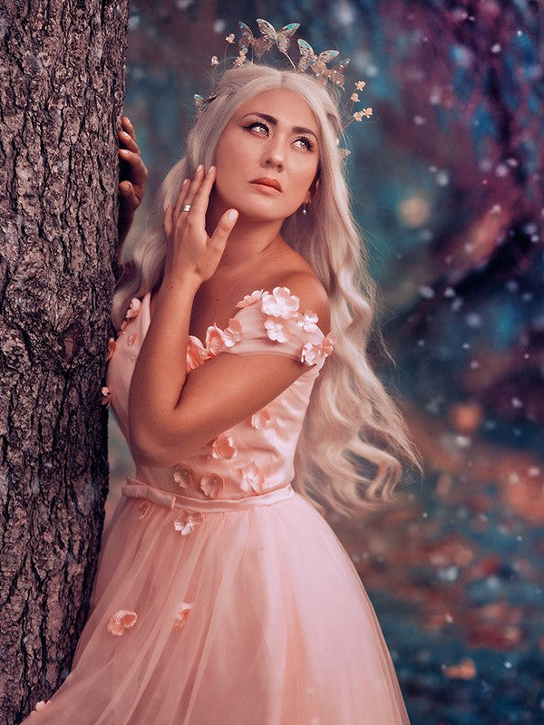 A-Line/Elegant Off-the-Shoulder Applique Tulle Sleeveless Floor-Length Prom Dresses