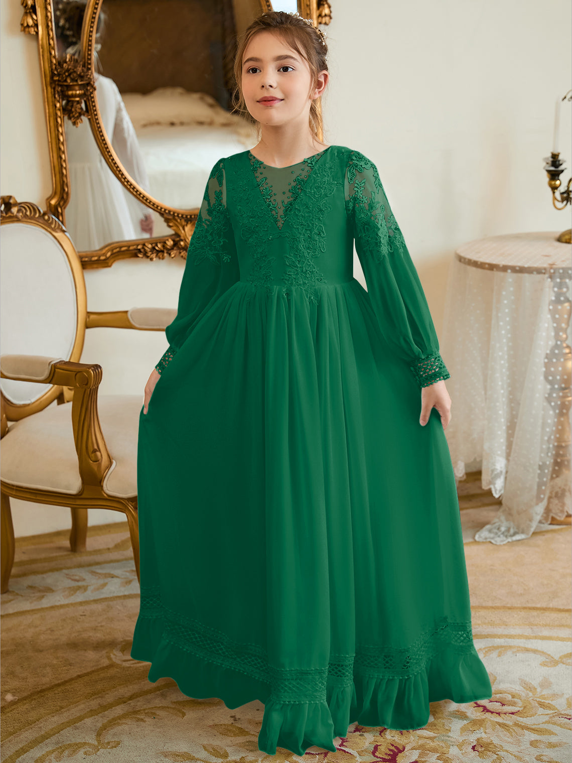 A-line Chiffon Floor-length Ivory First Communion Dress