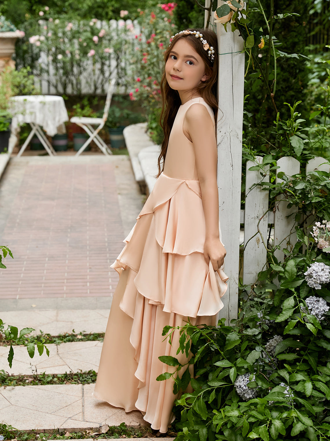 A-line Chiffon Floor-length Light Peach Flower Girl Dress