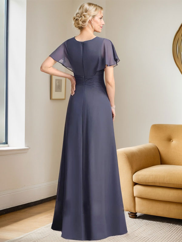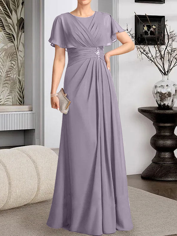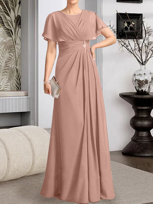 A-line Scoop Floor-Length Chiffon Mother of the Bride Dress With Pleated Beading