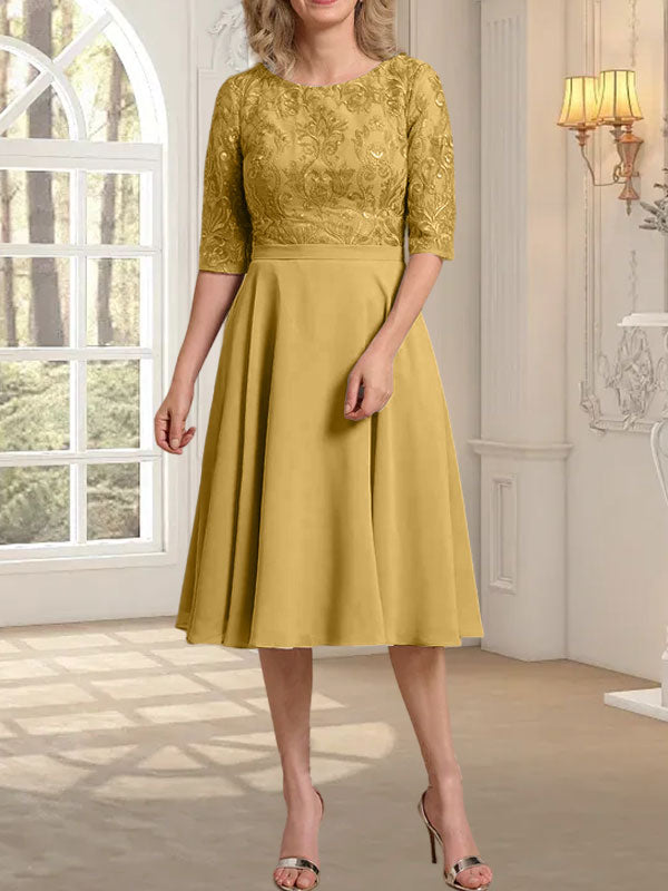 A-line Scoop Knee-Length Lace Chiffon Mother of the Bride Dress