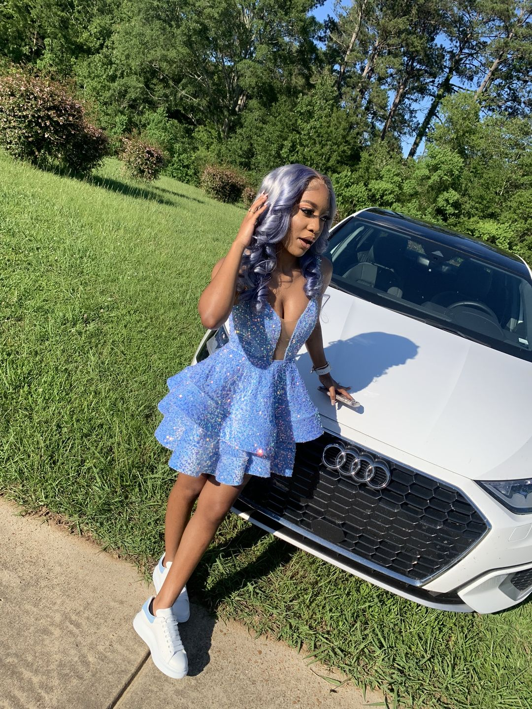 A-line Sequins Sweet 16 Birthday Dress Layered Skirt Popular Homecoming Dress Y07