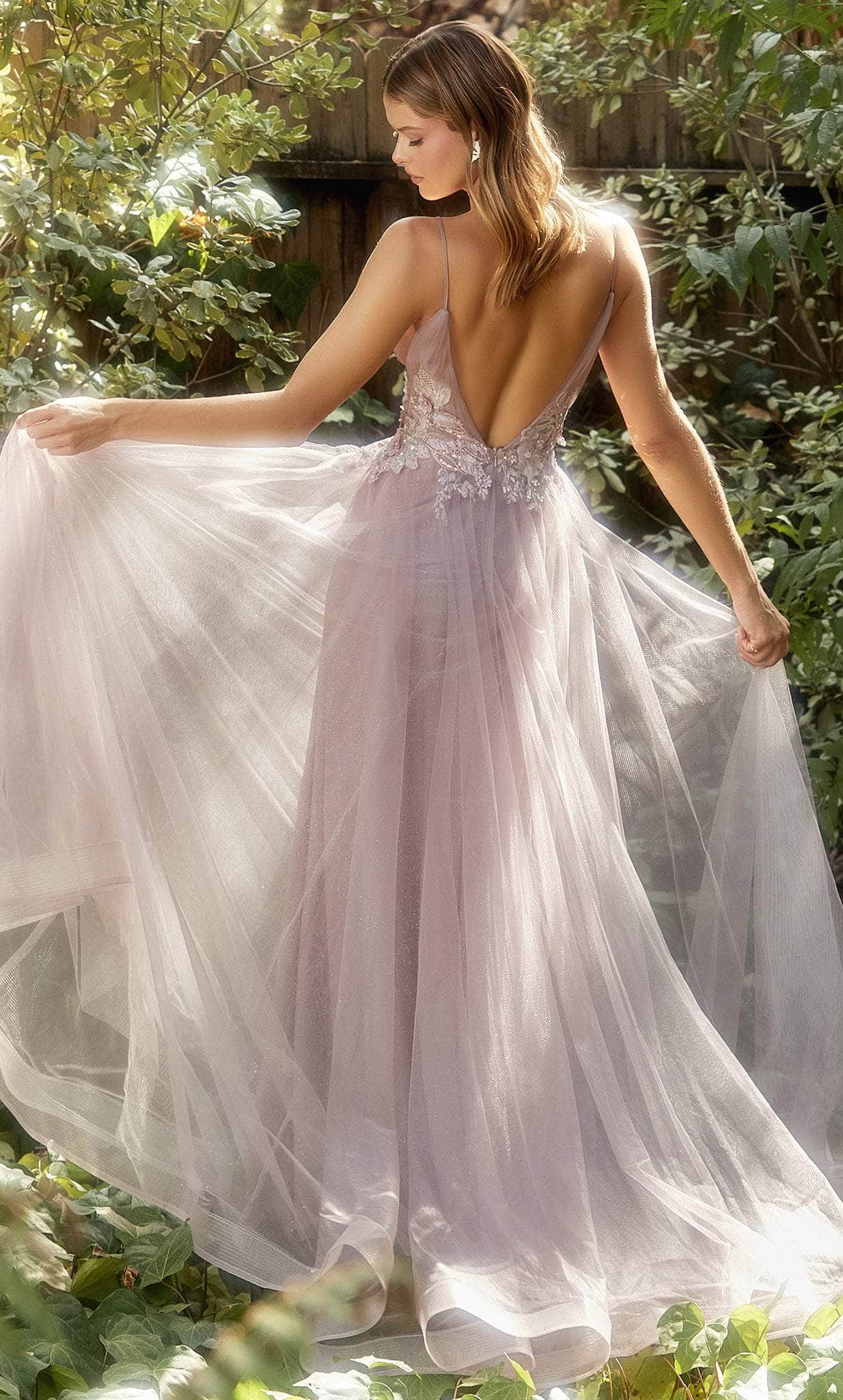Exude a charm that is meant to mesmerize the elite crowd in this Andrea and Leo A1143 masterpiece. Beautiful iridescent sequins and beadwork adorning the bodice and top skirt will fascinate all in sight. It has sheer inset detailing on the plunging sweetheart neckline. and spaghetti straps that lead to the plunging v-back. The gathered tulle skirt parades a full length A-line silhouette and makes a dramatic exit in a sweeping train. This Andrea and Leo A1143 style will absolutely make you feel special! Models are wearing the Blue Jay and Mauve colors.
