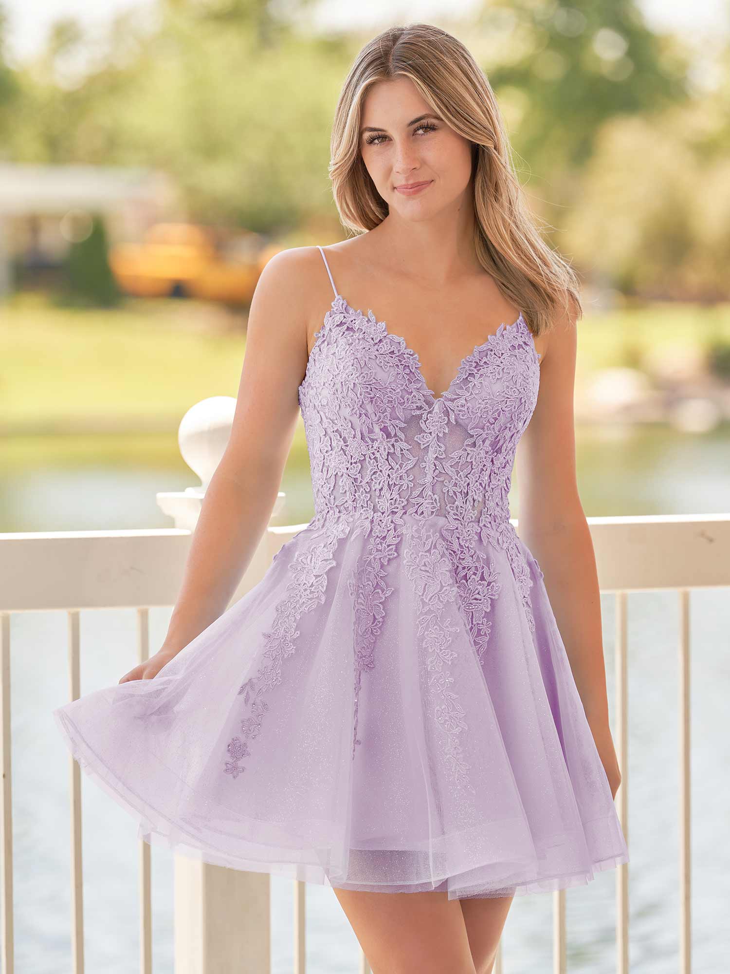 Silhouette: A-Line Style Fabric: Lace Fabric Color: Sky Blue. Lilac. Red. Royal Blue. Black Color Length: Short-mini Length Neckline: Spaghetti-Straps Sleeves: Sleeveless Back: Lace-up Back Embellishment: Lace Appliques