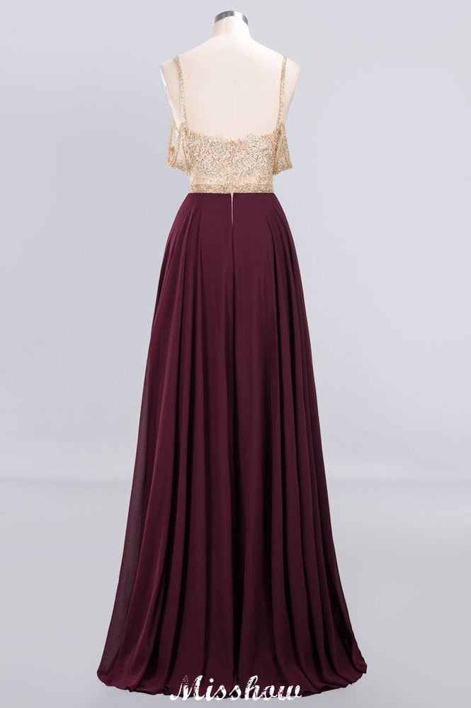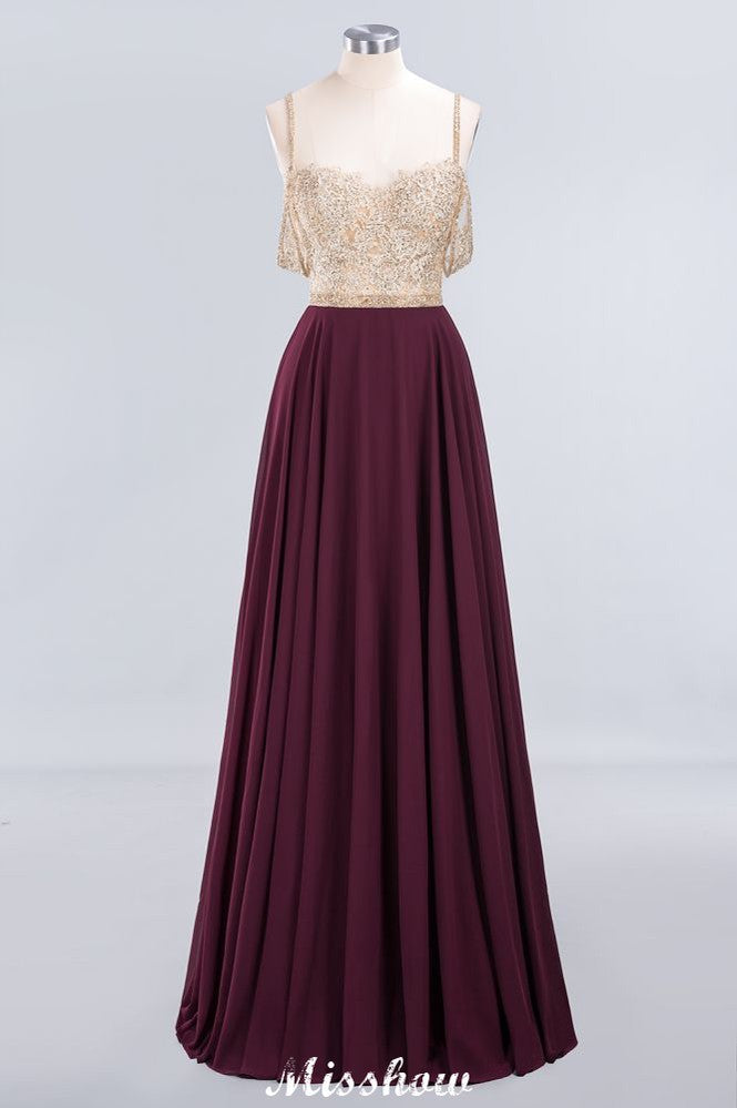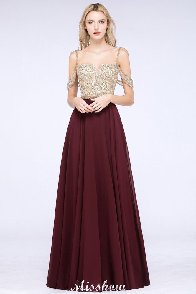 Appliques Spaghetti Straps Prom Dresses | A-Line Sleeveless Evening Dresses