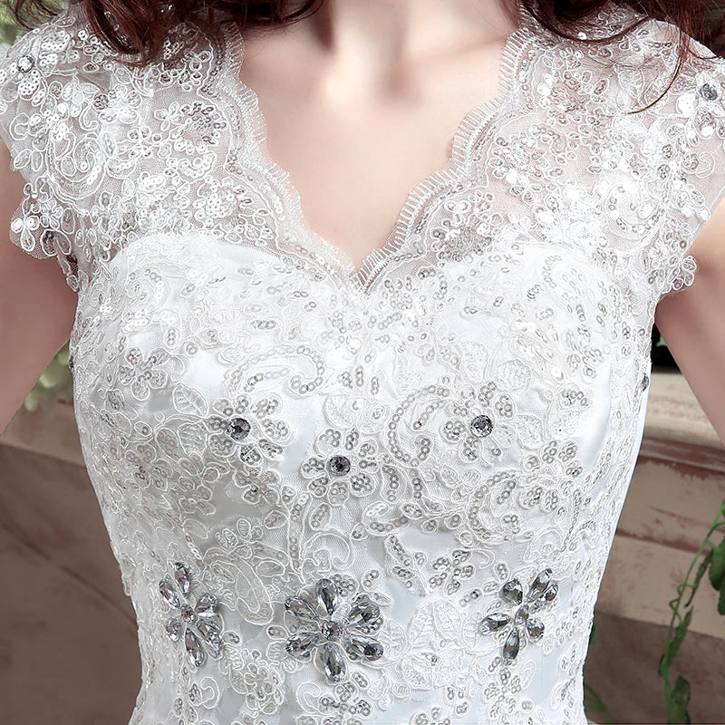 Applqiues Vestido De Noiva Cap Sleeve Wedding Dresses V-neck Vestidos De Novia
