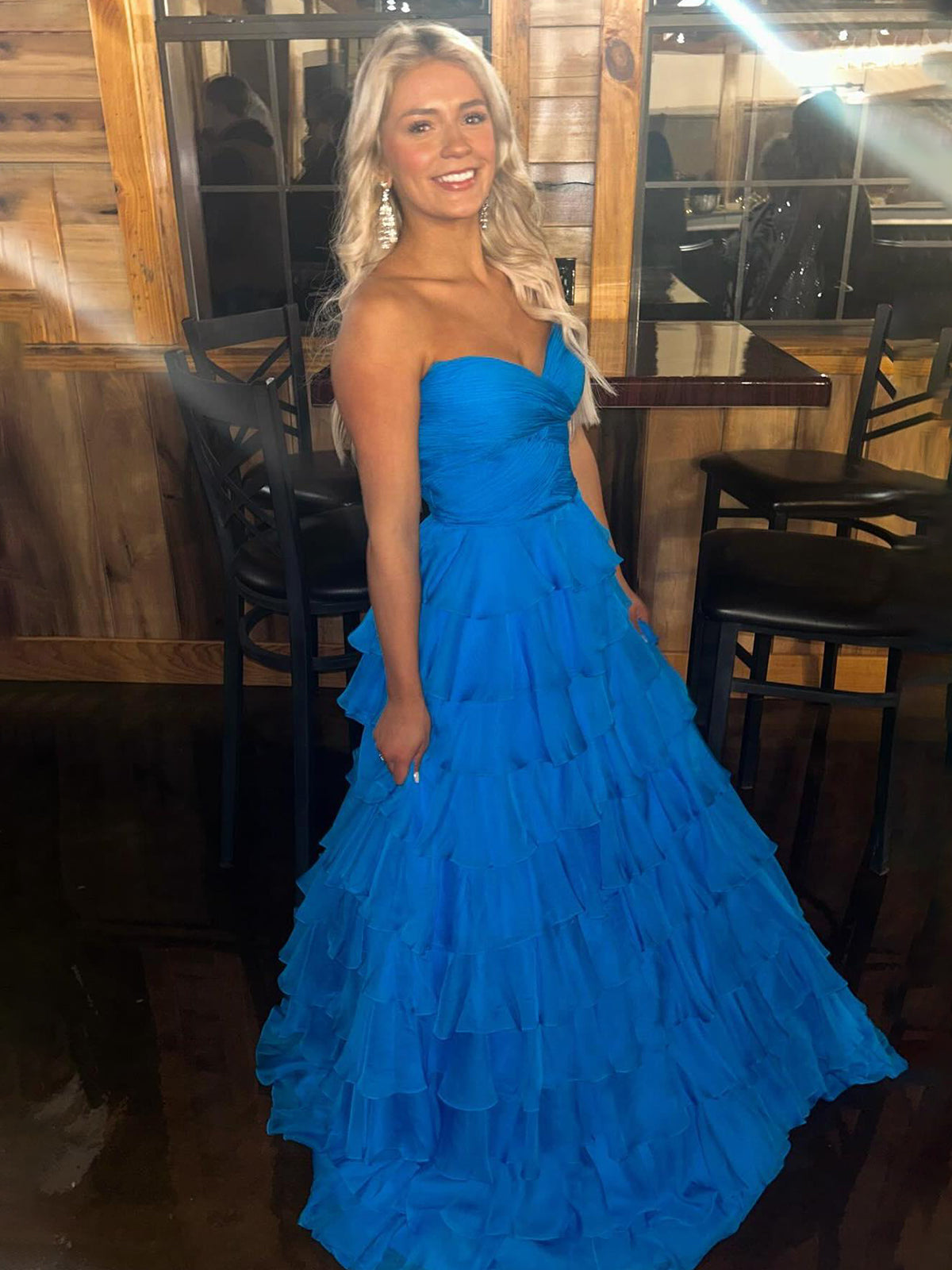 Bindi | Sweetheart Blue Chiffon Tiered A-line Prom Dresses