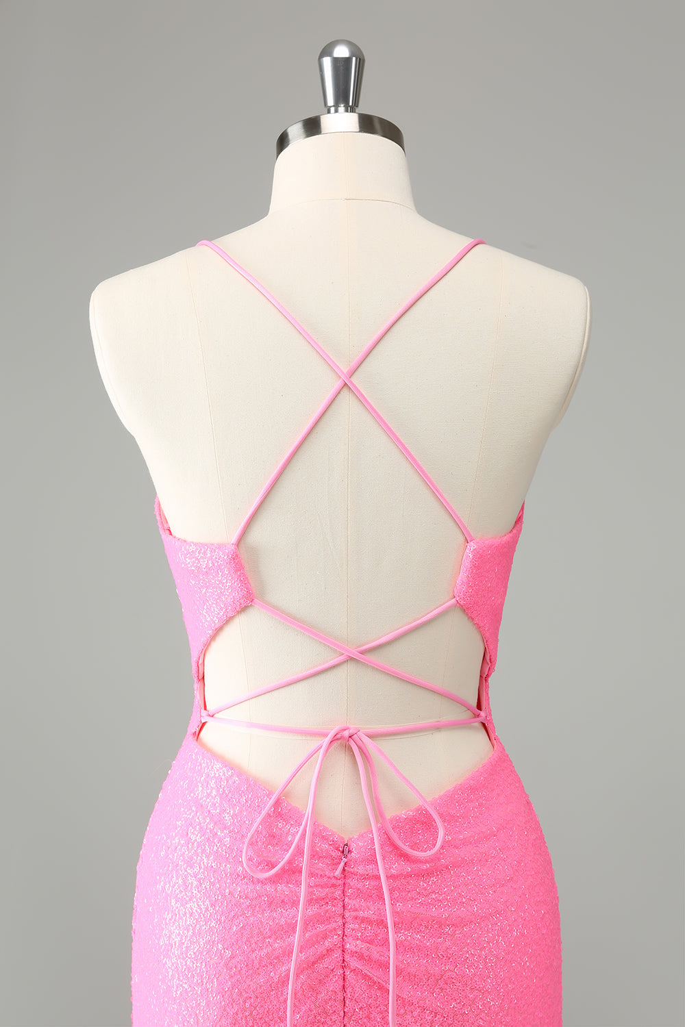Black Bodycon Spaghetti Straps Sequins Short Homecoming Dress with Lace-up Back