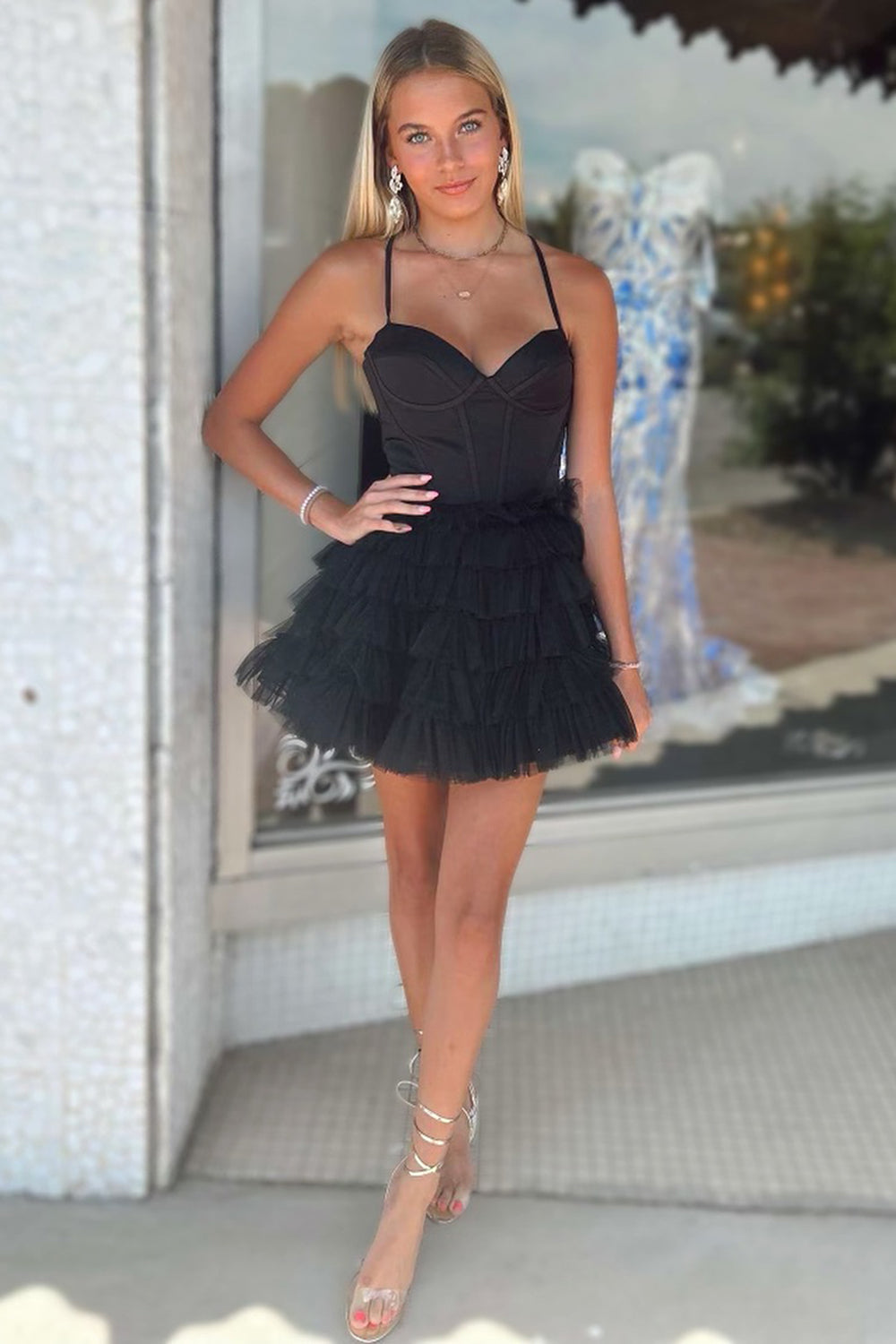Spaghetti Straps Tulle A-Line Tiered Short Homecoming Dress
