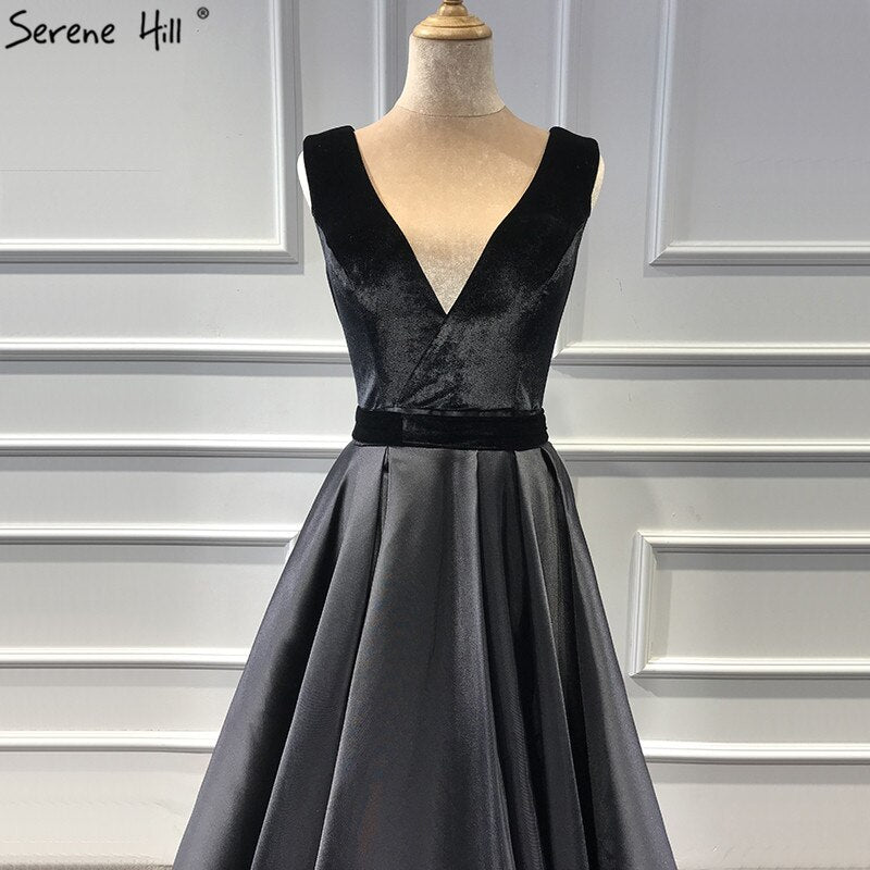 On Sale No Return No Refund Sale Black Velour Sleeveless A-Line Sexy Evening Dresses 2025 Real Photo Deep-V Simple Formal Dress LA60951