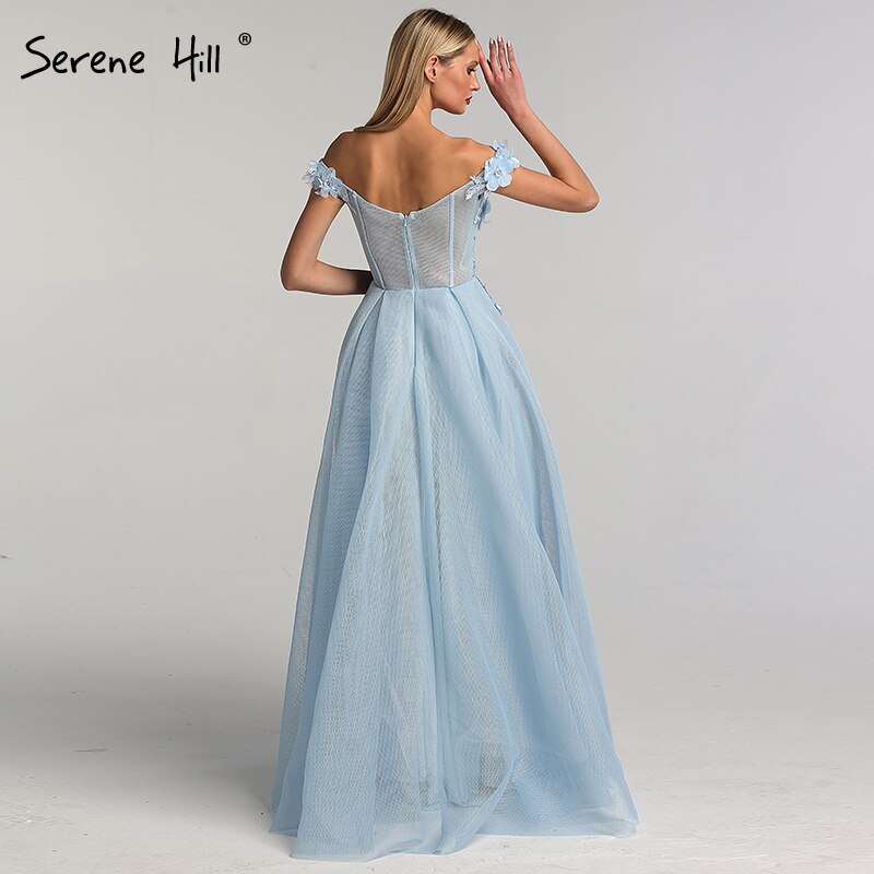 Sale Blue Off Shoulder Sexy Beach Evening Dresses Handmade Flowers Pearls Sleeveless Evening Gowns 2025 LA60868