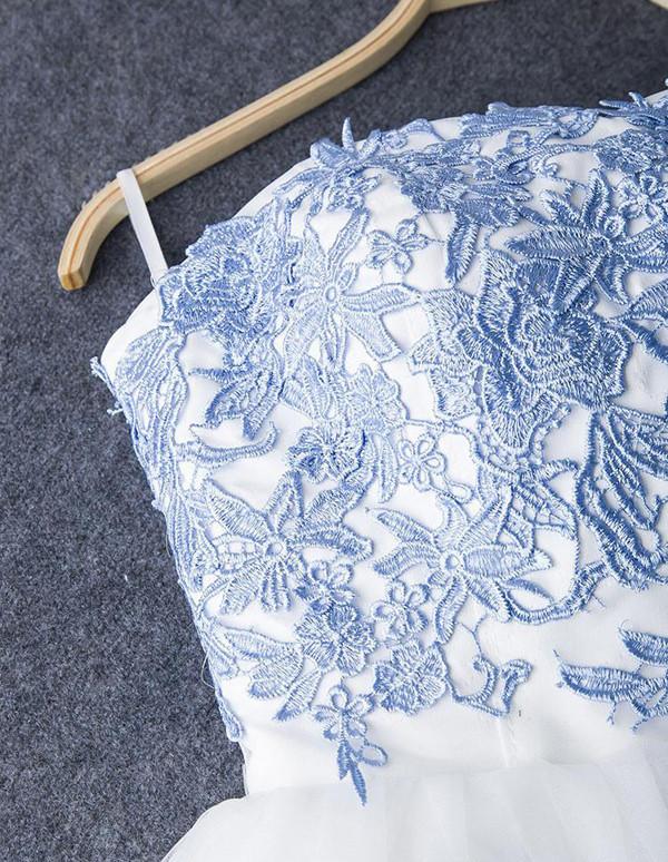 Blue Tulle A-line Strapless Short Prom Dress, Cheap Homecoming Dress