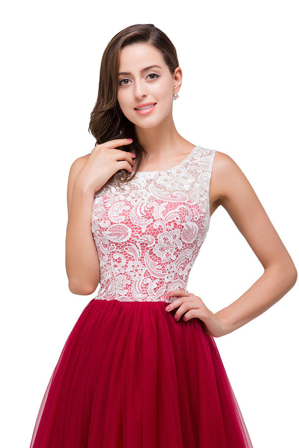 Burgundy A-line Crew Lace Chiffon Bridesmaid Dresses