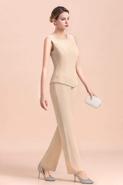 Champagne Long Chiffon Mother of the Bride Dress Two Pieces With Jacket