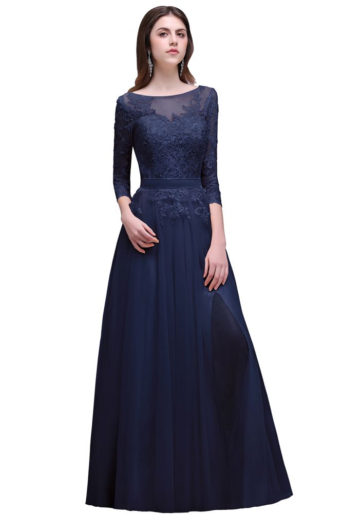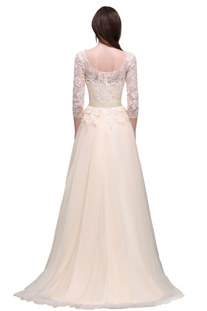 Champagne Scoop A-line Lace Appliques Prom Dress