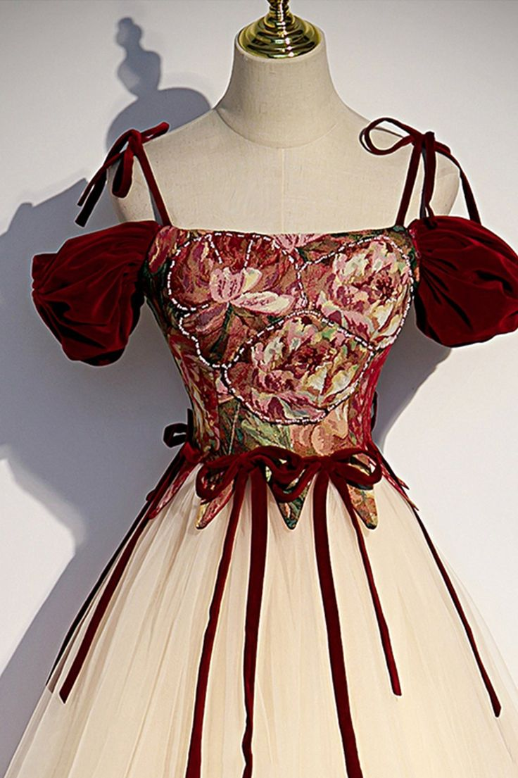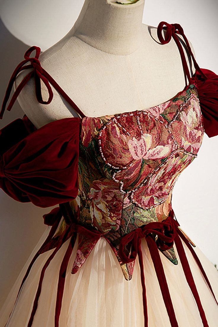 Champagne Tulle Spaghetti Strap Long Prom Dress A Line Party Ball Gown Y7952
