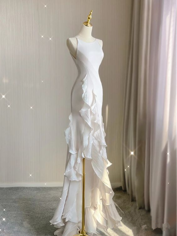 Charming White Wedding Dress,Sleeveless Bridal Dress Y2066
