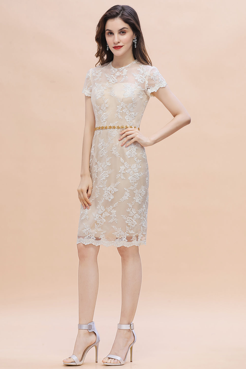 Chic Jewel Tulle Lace Beadings Mother of Bride Dress with Short Sleeves Online