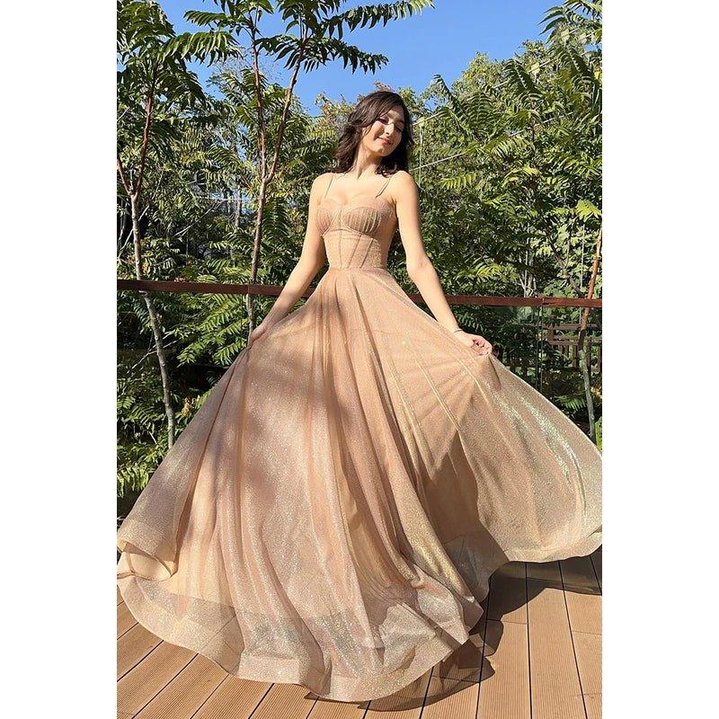 Classic & Timeless Spaghetti Straps Sparkly Tulle A-line Formal Party Prom Dress