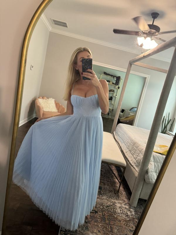 Classy Spaghetti Straps Pleated Tulle Green Midi Prom Dress A Line Evening Dress Y8452
