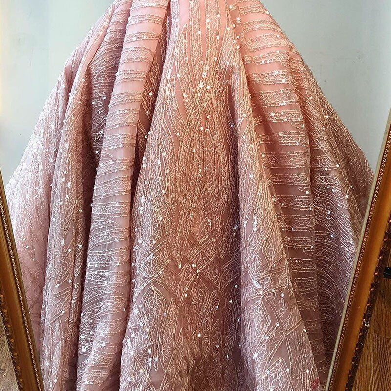Clear Water Blue High Collar Evening Dresses 2025 Short Sleeve Lace Sequined Bridal Gowns Design Real Photo HM66981