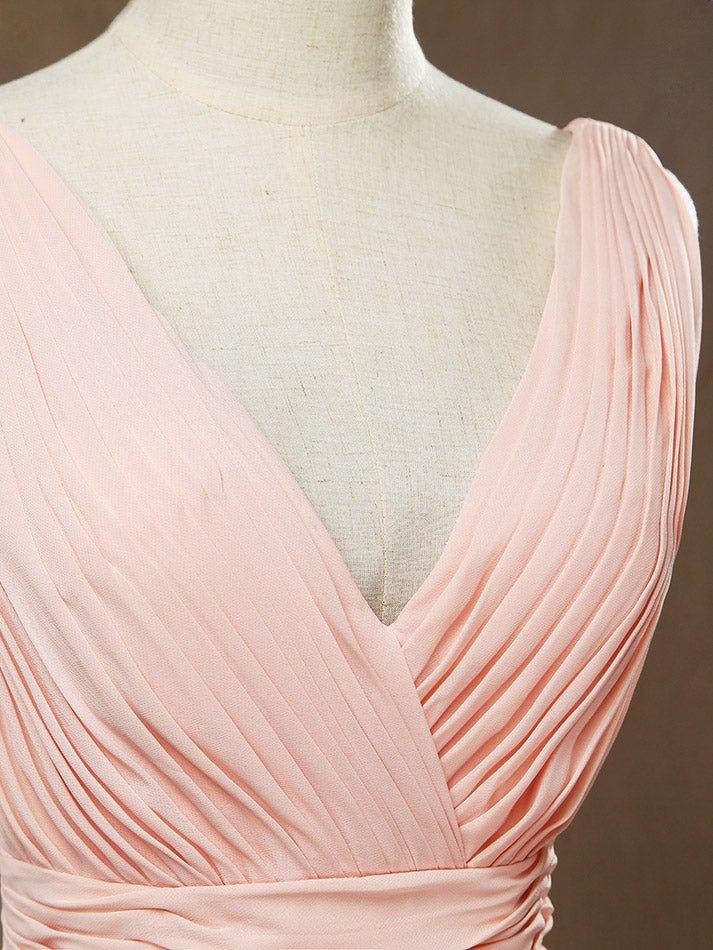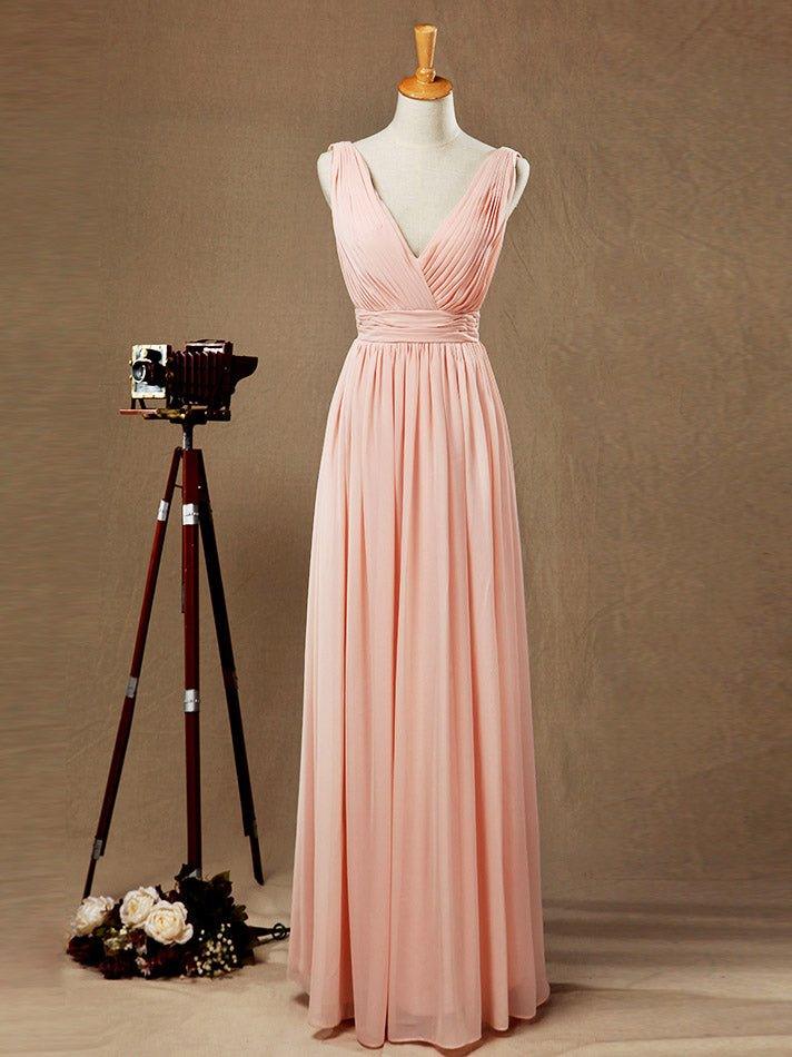 Chiffon Bridesmaid Dress A-Line/Princess Double Straps Deep V-neck V-back Floor-Length