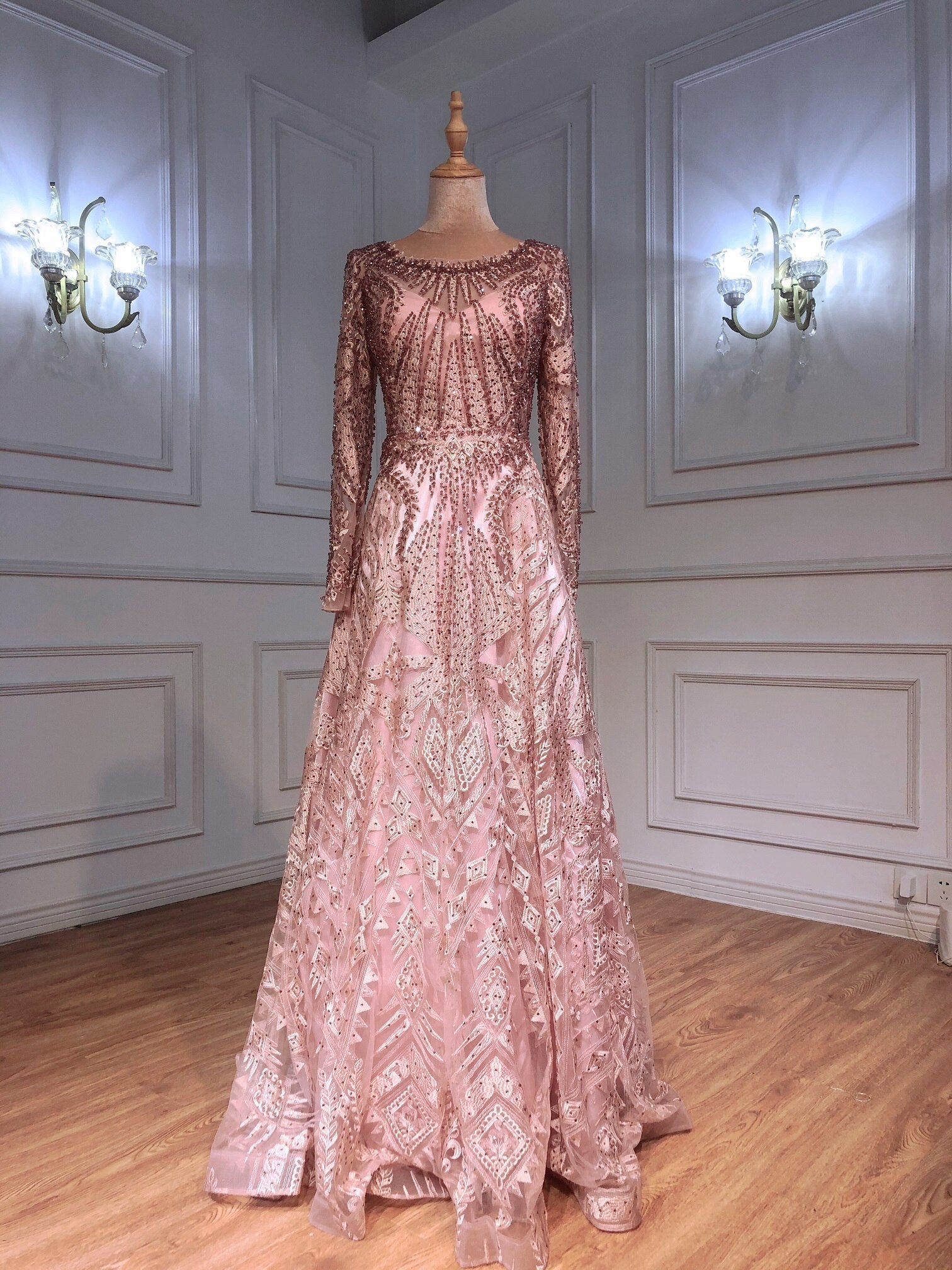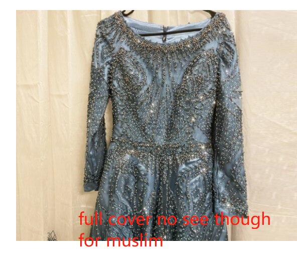 dubai Luxury Designer Navy Blue Lace Beaded A line Muslim Long Evening Dresses 2025 Formal Dress Plus Size LA60900