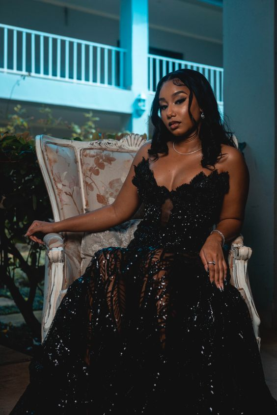 Elegant Black Long Evening Dress Black Glam Dress Y6639