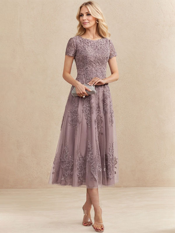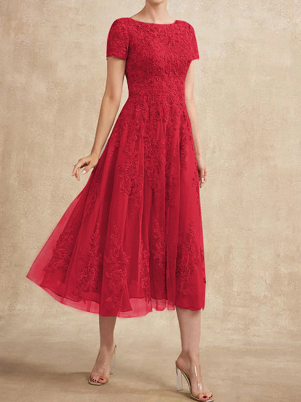 A-line Scoop Tea-Length Tulle Lace Mother of the Bride Dress