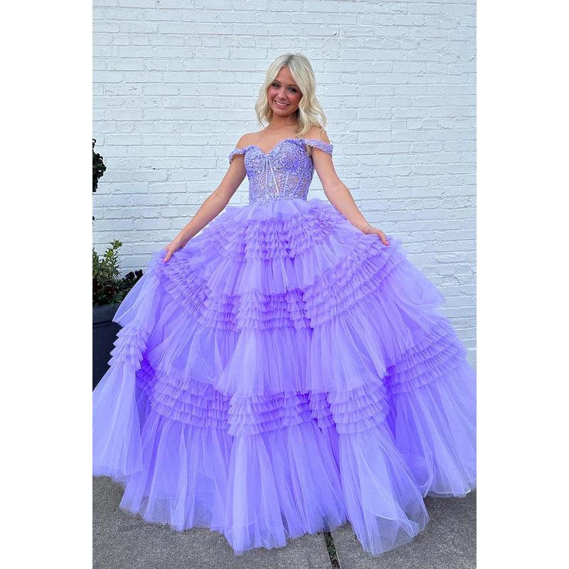 Elegant & Luxurious Cap Sleeves Off-Shoulder A-Line Applique Party Prom Dress