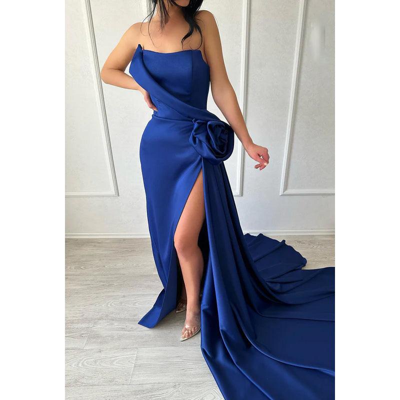 Elegant & Luxurious Halter Sleeveless Side Slit Sheath Prom Dress With Flower