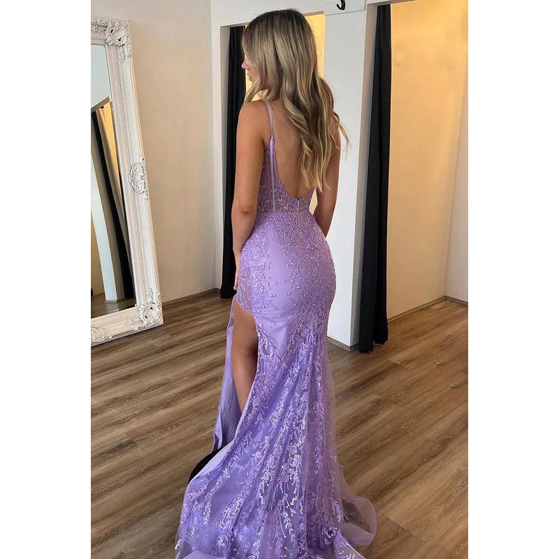 Elegant & Luxurious Spaghetti Straps Side Slit Mermiad Backless Applique Prom Dress