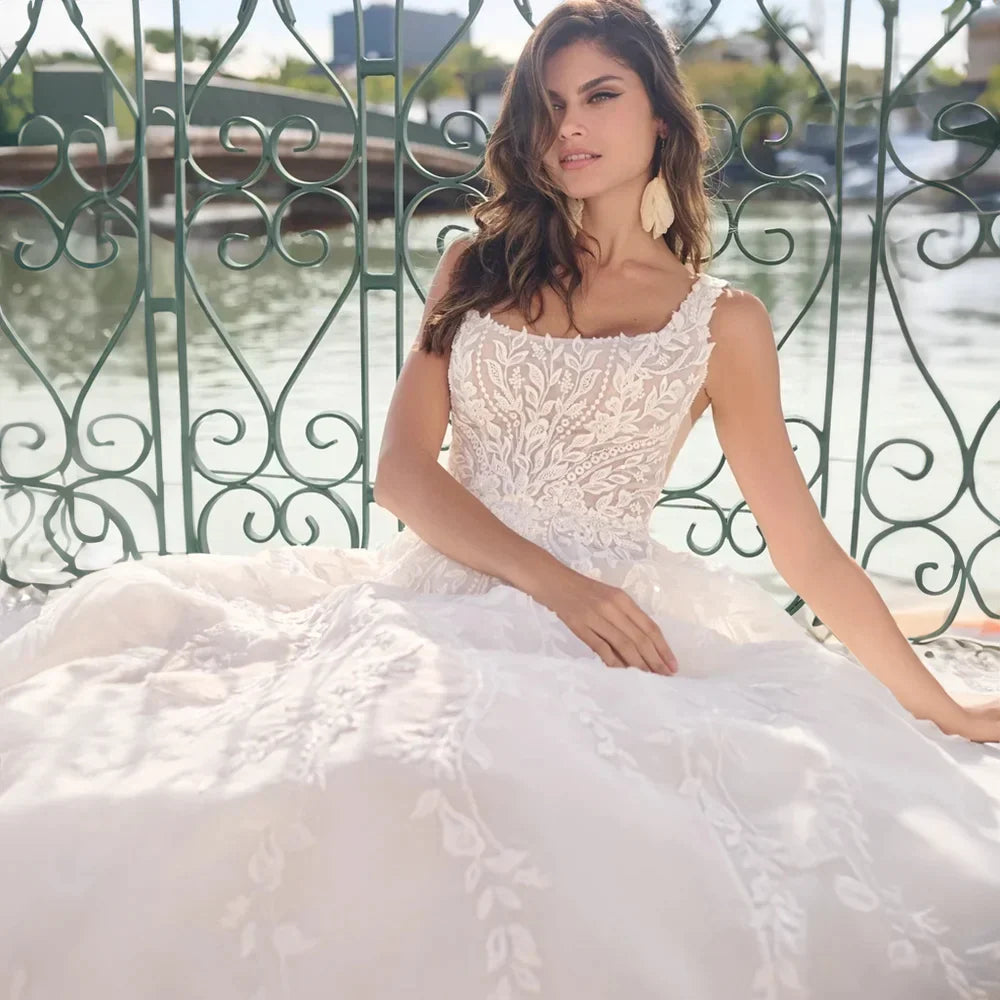Elegant Square Neck Wedding Dress Open Back Sleeveless A-line Beading Exquisite Bridal Gowns Custom Made robe de mariée