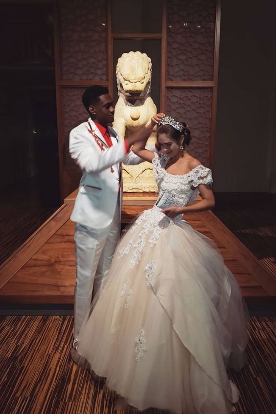 Elegant Tulle Lace long Ball Gown Champagne Sweet 16 Dress Y396
