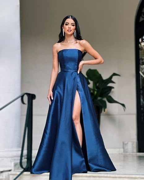 Emerald Green Strapless A-line Evening Dress Emerald Green Satin Formal Dress Y5372