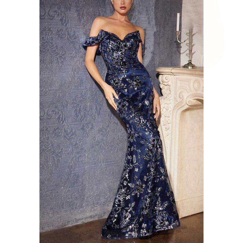Floral Off-Shoulder Strapless Appliqued Tulle Mermaid Long Prom Evening Dress