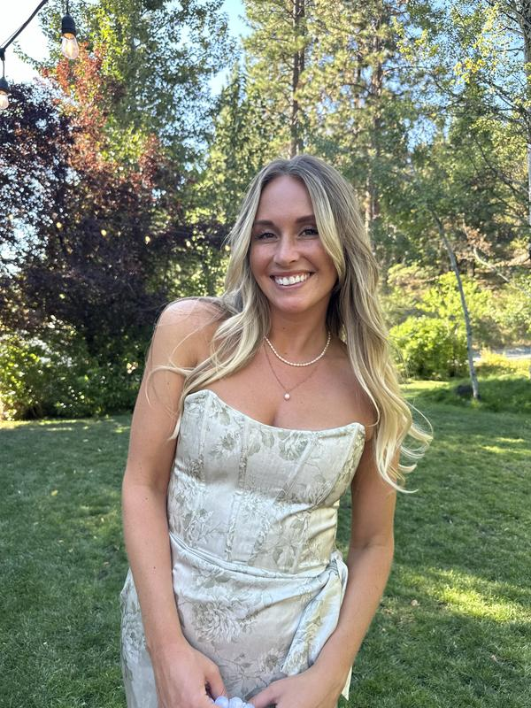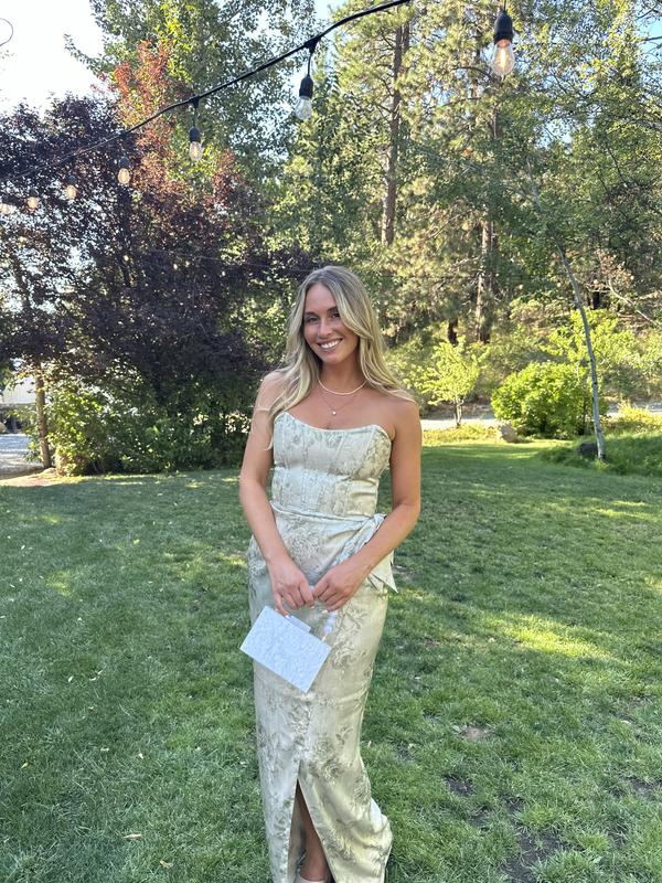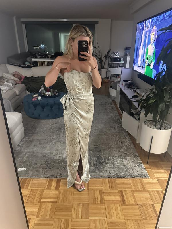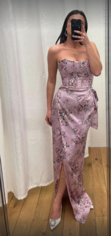 Fuchsia Printed Corset Front-Slit Satin Prom Dress Formal Evening Dress Y8458