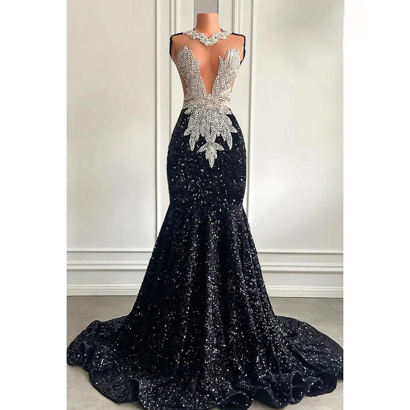 Glamorous & Dramatic Ruffles Mermiad Deep V-Neck Sleeveless Sequins Evening Prom Dress