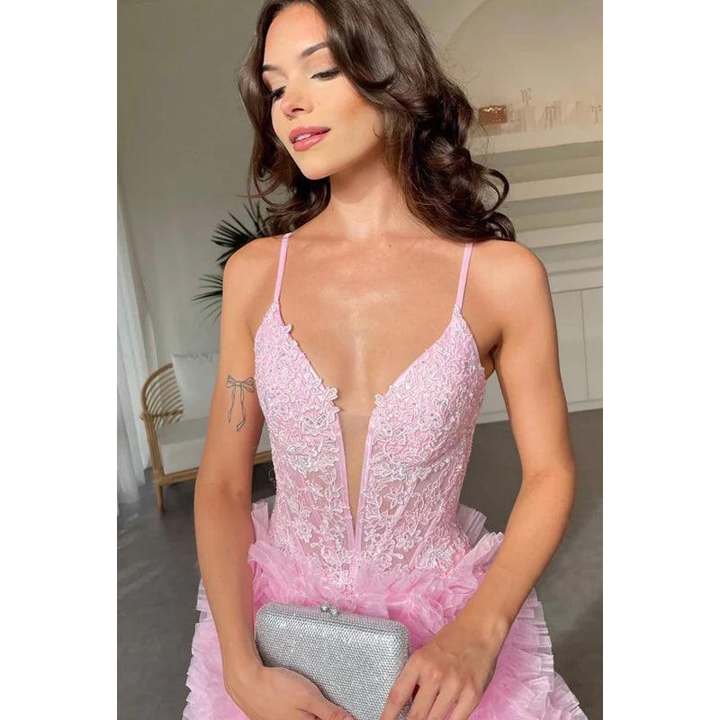 Glamorous & Dramatic Sleeveless Spaghetti Straps V-Neck Slit Evening Party Prom Dress