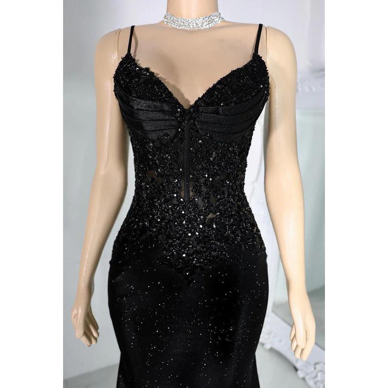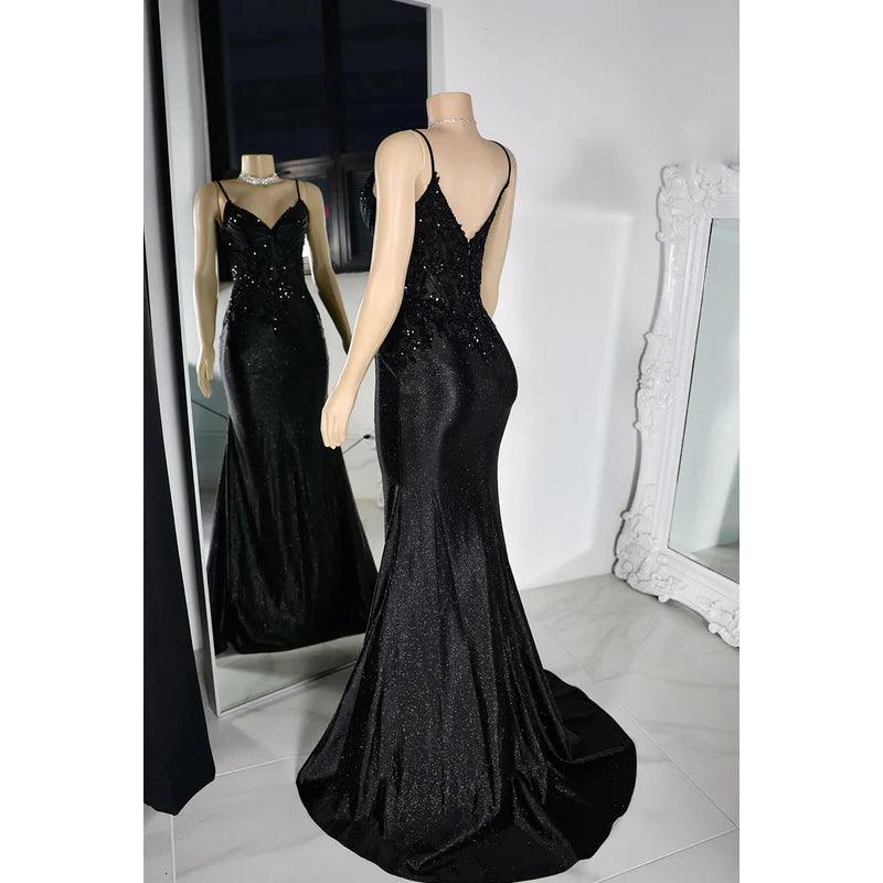 Glamorous & Dramatic Spaghetti Straps V neck Mermaid Sequins Evening Party Prom Dress