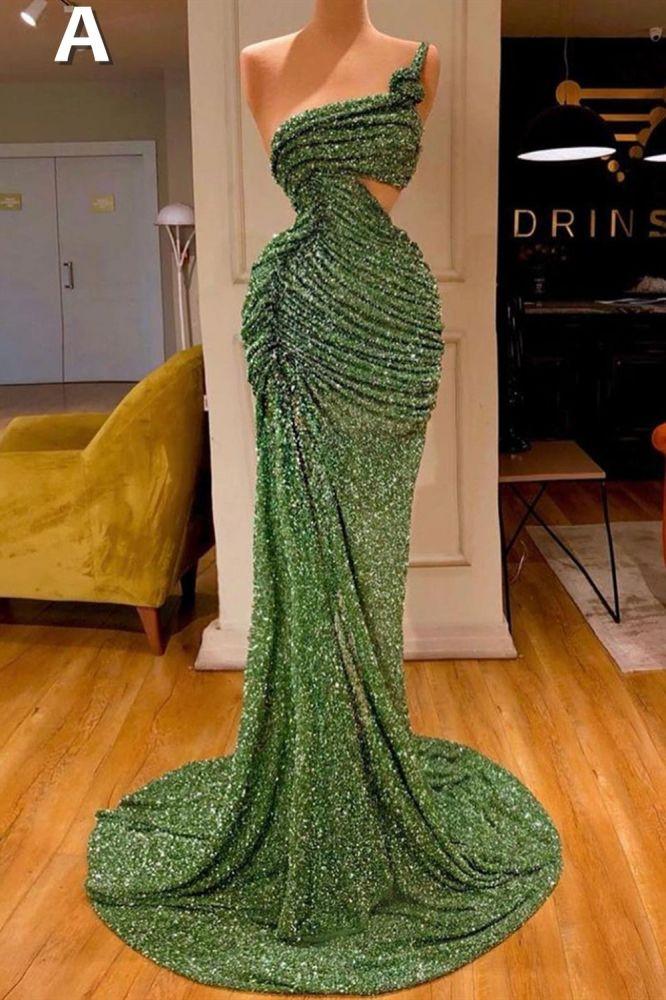 Back Details: Zipper Season: Spring. Summer. Fall Neckline: One Shoulder. Spaghetti Straps Silhouette: Mermaid Body Shape: Misses Train: Sweep / Brush Train Sleeve Length: Long Sleeves Waist Line: Natural Hemline: Floor-length