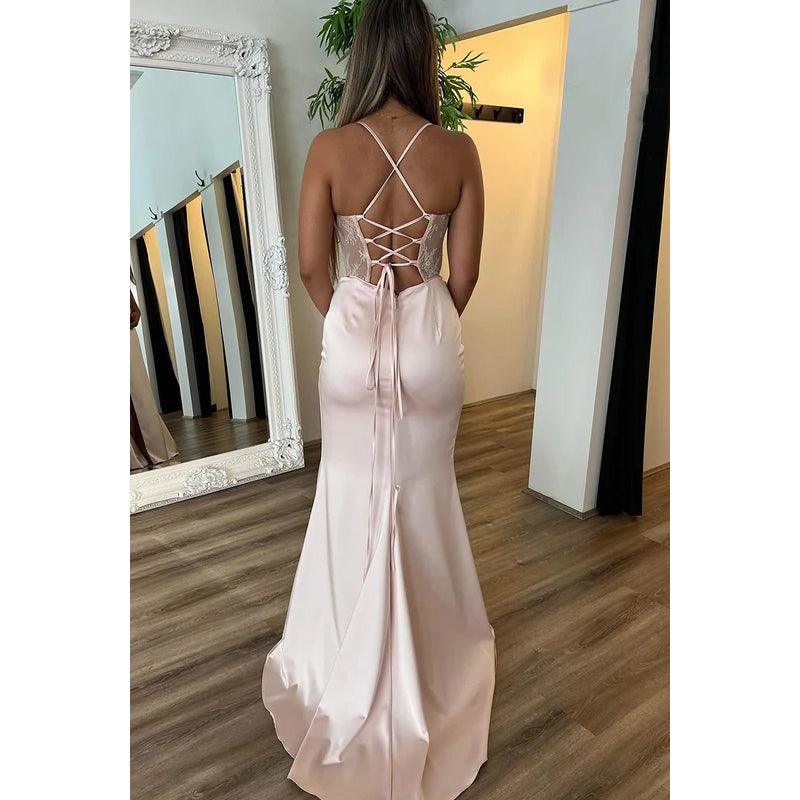 Gorgeous & Charming Criss-Cross Straps Sleeveless Sheath Side Slit Prom Dress