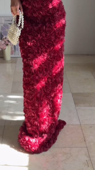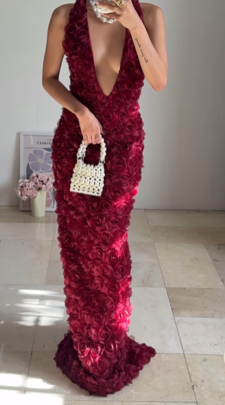 Gorgeous Deep V Burgundy Rose Flowers Sheath Long Prom Dress Evening Dress Y8504