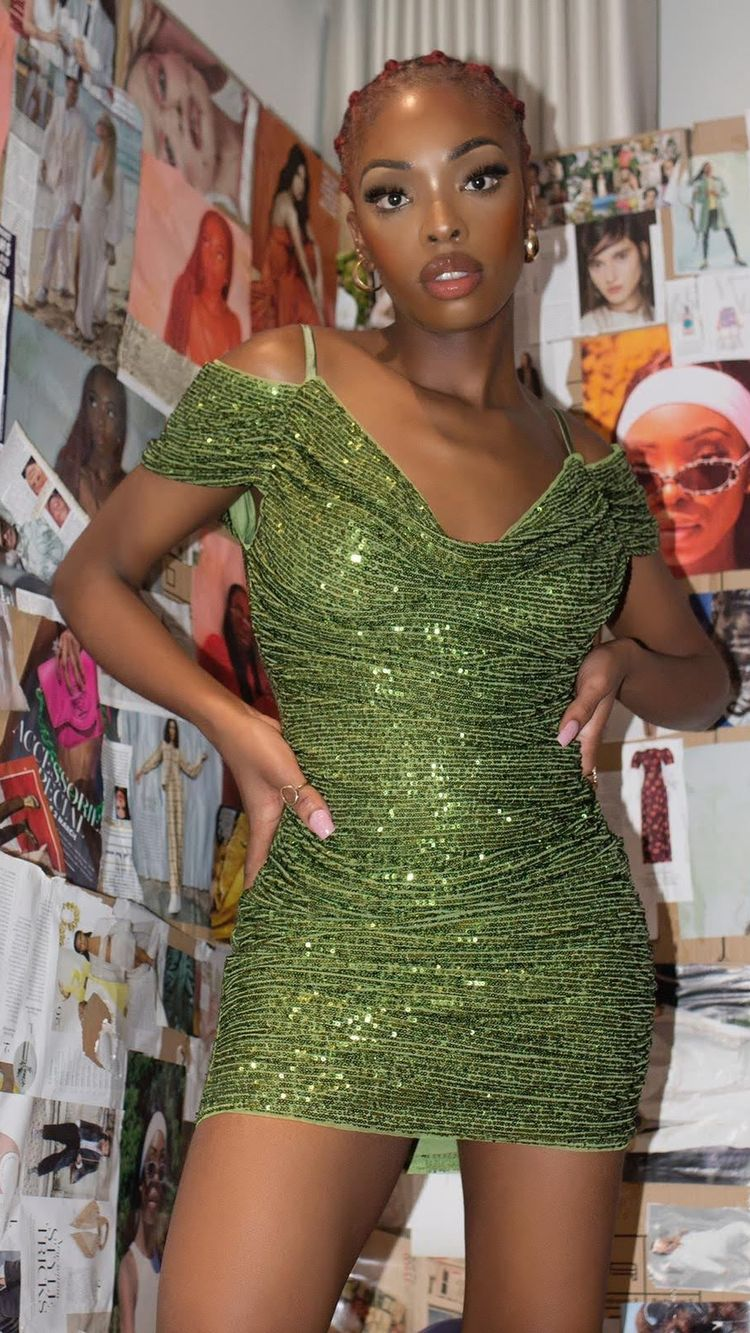 Green Sequins Homecoming Dress Green Party Dress Y1963