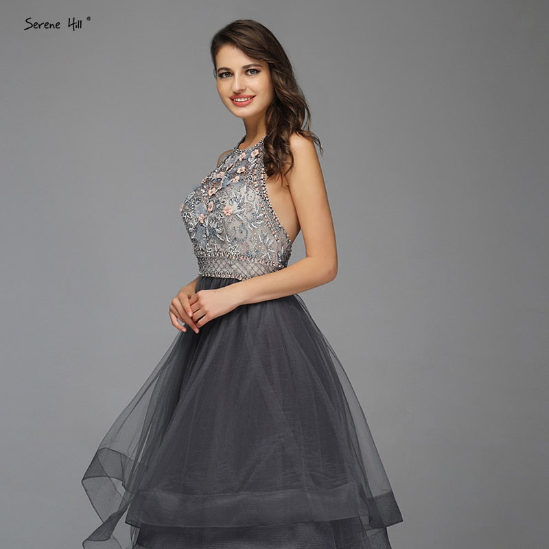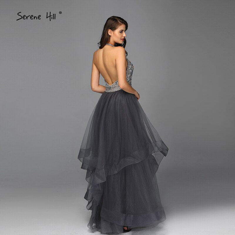 Sale Grey Sleeveless Sexy A-Line Evening Dresses Design 2025 Backless Beading Crystal Evening Gowns Real Photo LA70144