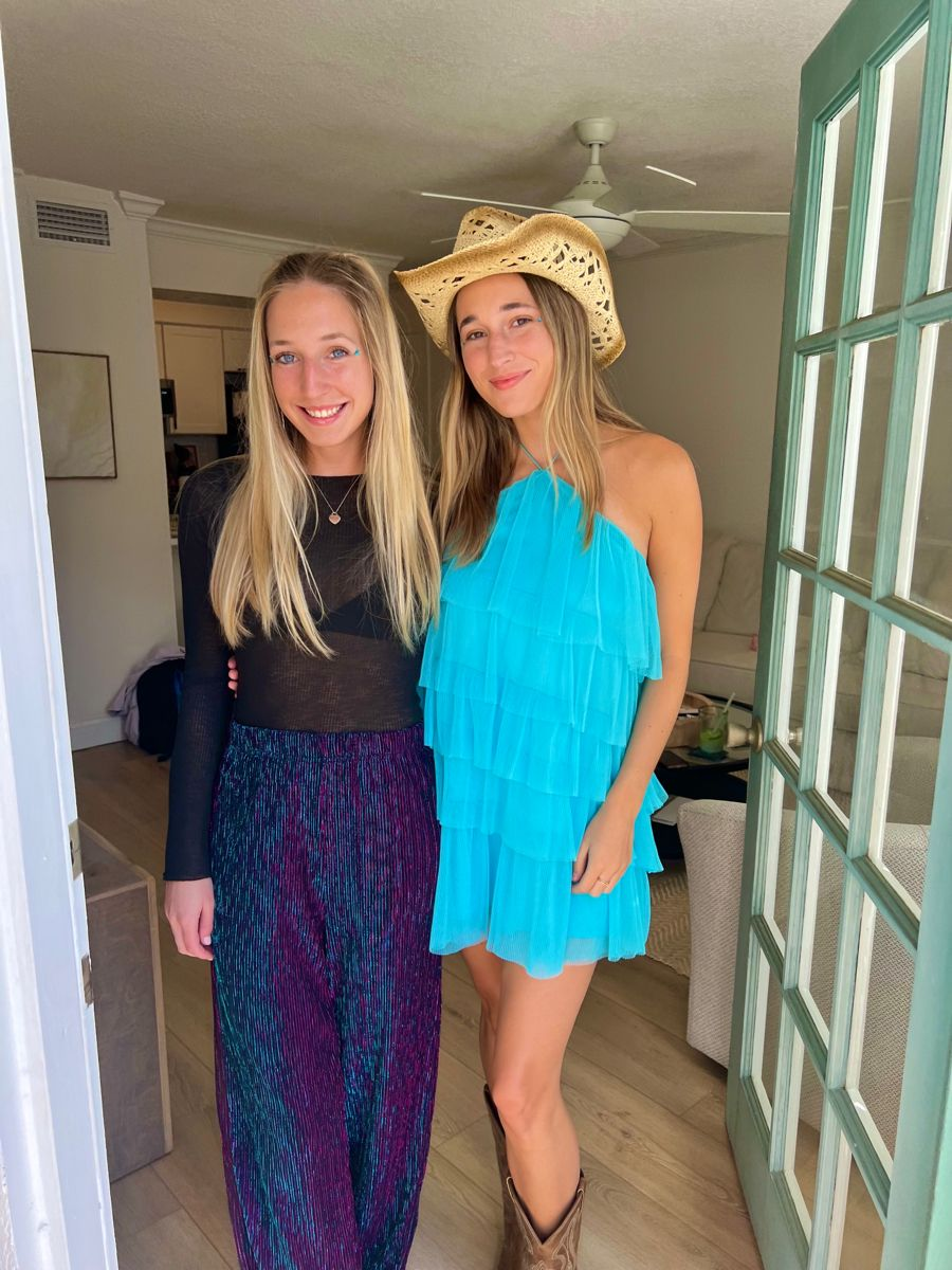 Halter Neckline Blue Multi-layered Homecoming Dress Y2768